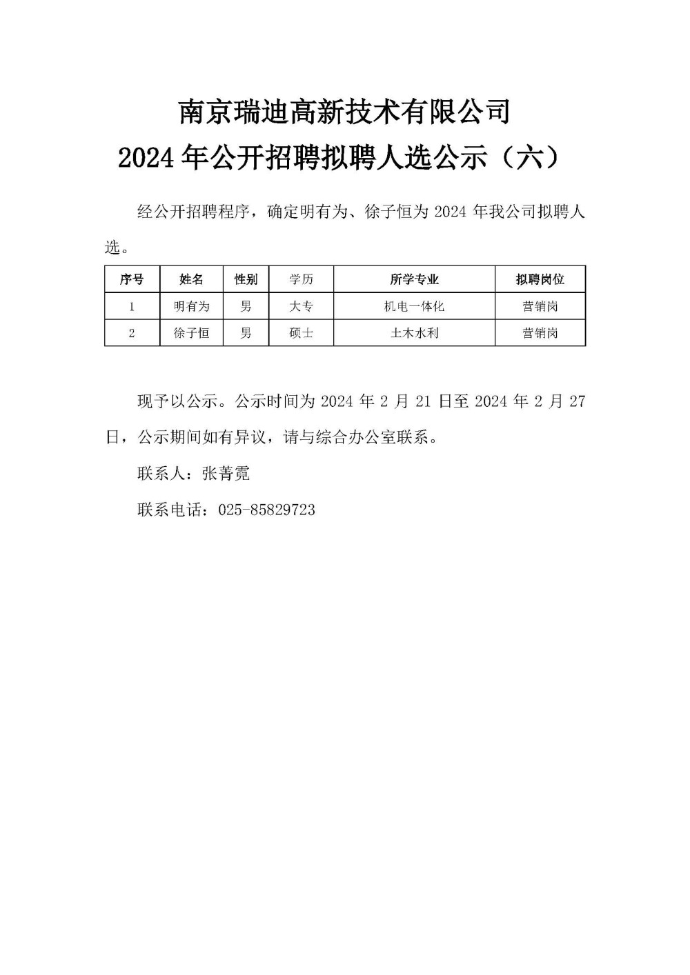 米兰网页版登录入口2024年公开招聘拟聘人选公示(六)