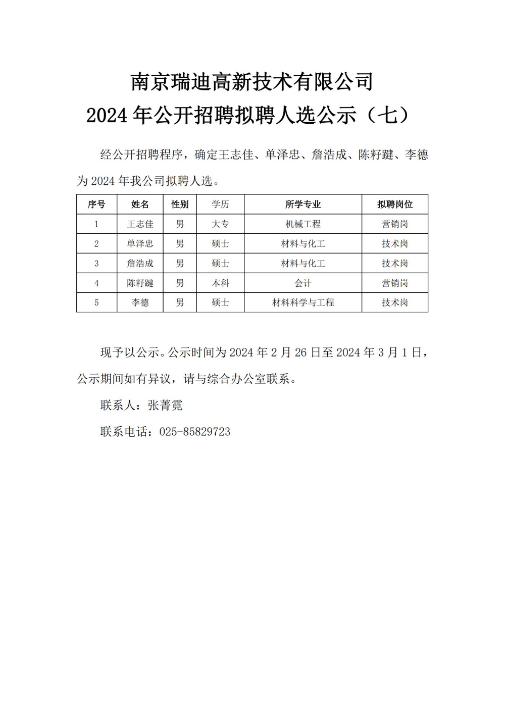 米兰网页版登录入口2024年公开招聘拟聘人选公示(七)