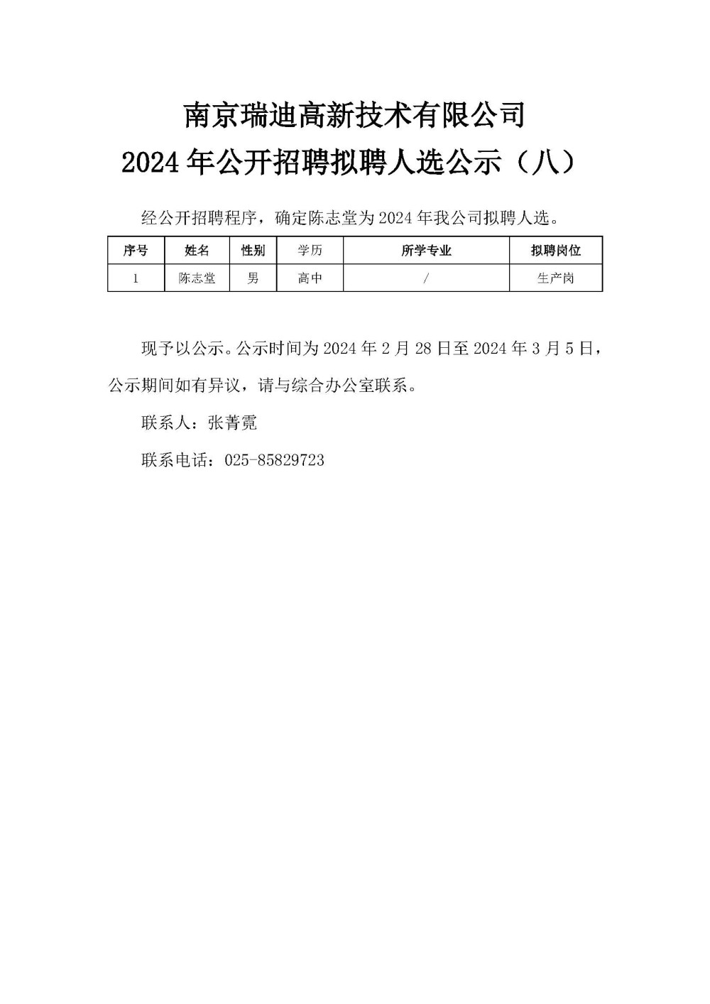米兰网页版登录入口2024年公开招聘拟聘人选公示(八)