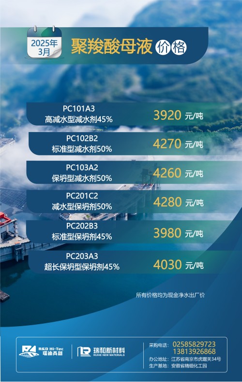 【聚羧酸系减水剂母液月度最新价格】丨2025年3月